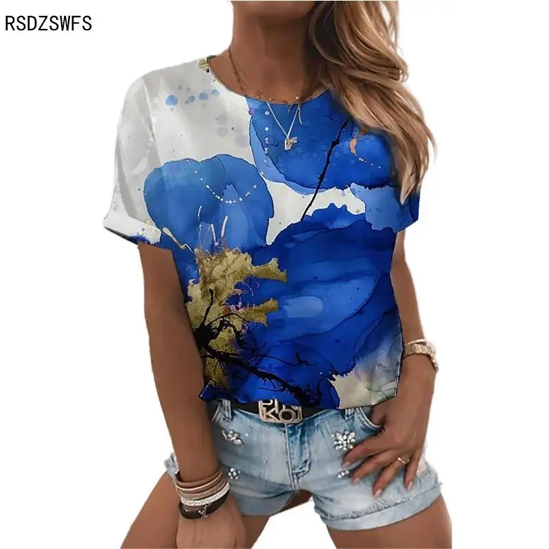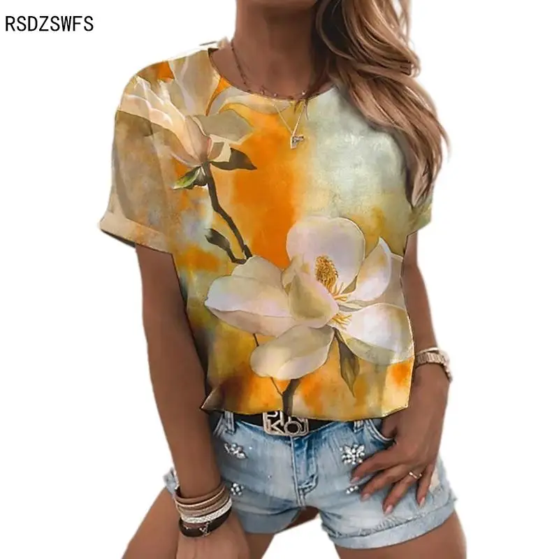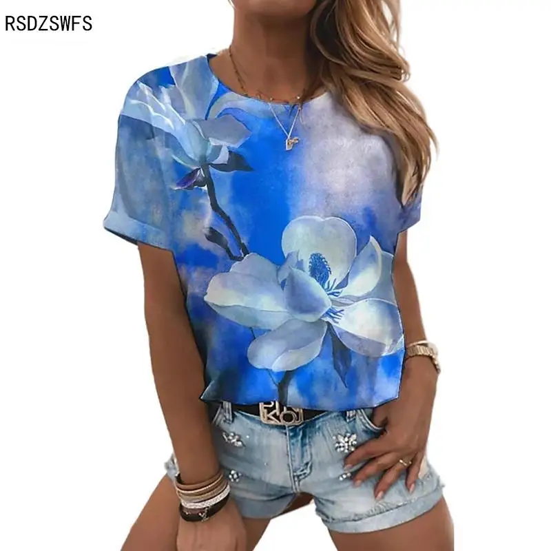 Супернатуральная женская футболка с коротким рукавом и цветочным 3D принтом, летняя модная свободная Мягкая футболка с круглым вырезом, женские футболки