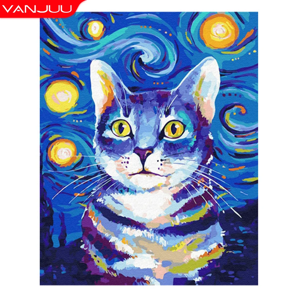5D алмазная живопись сделай сам, кошка и искусство, полный круг, жи...