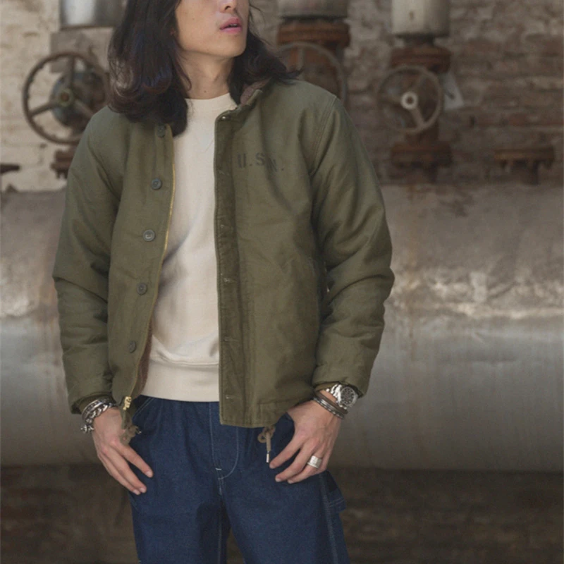 N-1 куртка была выпущена в mid-1940s. В комплект входит куртка из трех предметов, брюки и шляпа. Все они используют одну и ту же ткань. Они используются специальными водными солдатами на кораблях, широко известными как колода. На поверхности используется своего рода износостойкий хлопковый грогрен, внутри используется тканая Альпака или шерсть. Первое поколение N-1-это синяя версия без слов спереди и в США. Темно-синий Принт сзади. Он был быстро заменен на хаки зеленый (в начале 1944 года). После появления N-1 второго поколения волосяная линия на манжетах была удалена. Отменил слово US.NAVY на спине и изменил на USN напечатанный на передней части груди. Последняя версия была третьего поколения, и ремень пистолета под подмышкой также был отменен. Распределения закончился в начале 1960s.