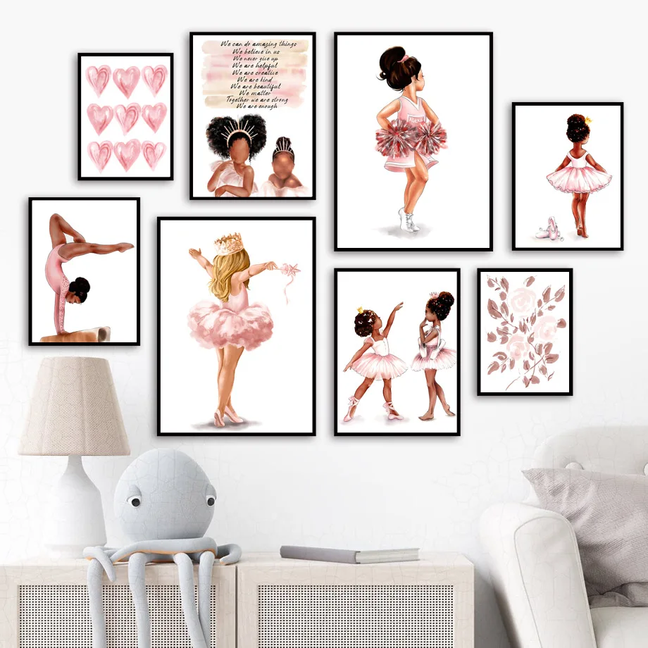 Настенные художественные картины, холст, бохо, черная девочка, балет, розовое сердце, мечта, скандинавские плакаты и принты, настенные фотографии, декор для детской комнаты