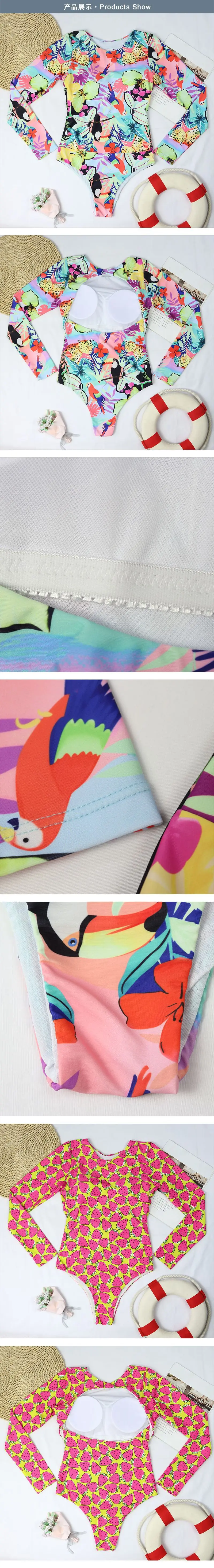 Женский купальник с длинным рукавом, открытой спиной и фруктовым принтом
