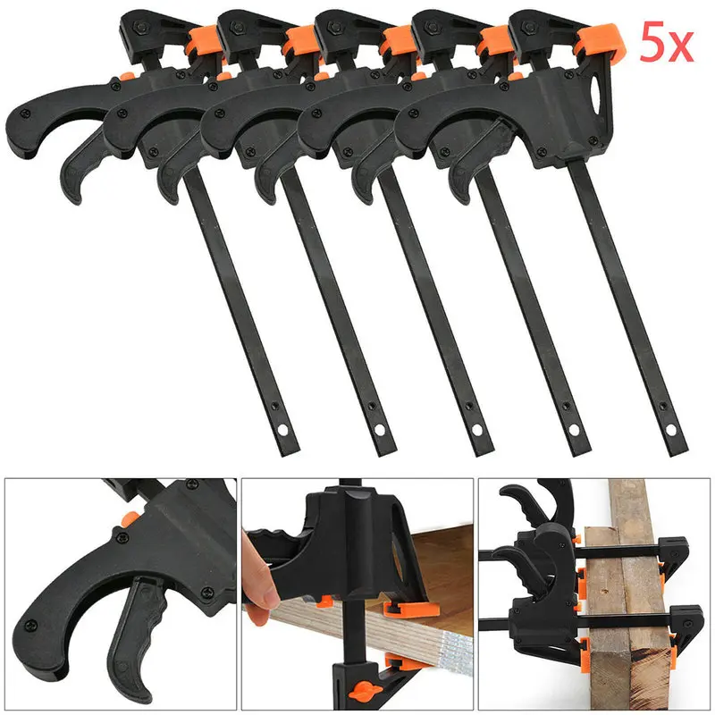 Набор зажимов для деревообработки, комплект из 5 Быстросъемных зажимов с храповым механизмом сделай сам для столярных работ, ручной инструмент, гаджет, зажим для деревообработки