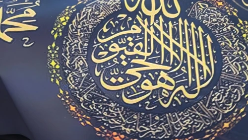 Мусульманская каллиграфия розовый, золотой, мраморный Al Kursi мусу...