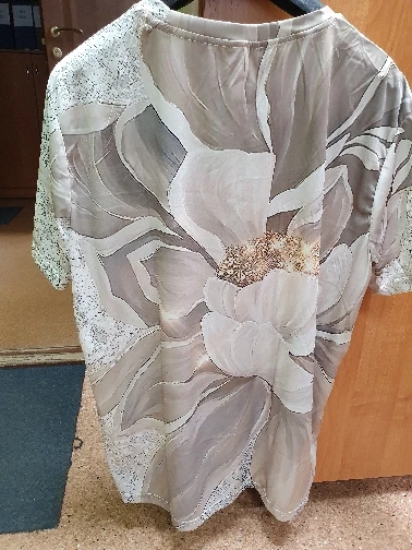 На мои объемы в момент примерки р.54, 108-88-112, рост 169см, вес 77кг, блуза XL села идеально. У ВСЕХ блузок в этой ценовой категории (а я их купила 27 штук у разных Продавцов) применяется всего 2 вида синтетической ткани: 1. мягкая и тонкая, слегка блестящая; 2. пожёстче и сетчатой структуры, матовая. Бирок с составом ткани нет ни на одной футболке. Отличаются футболки только КАЧЕСТВОМ ПРИНТА (чёткий и яркий рисунок ИЛИ нечёткий, блёклый, размазанный) и качеством обработки ГОРЛОВИНЫ. Ну, ещё длиной. У этой футболки - всё хорошо обшито. Ткань тонкая, мягкая, с лёгким блеском. Длина - норм, см.фото на мне. Рисунок с обоих сторон.