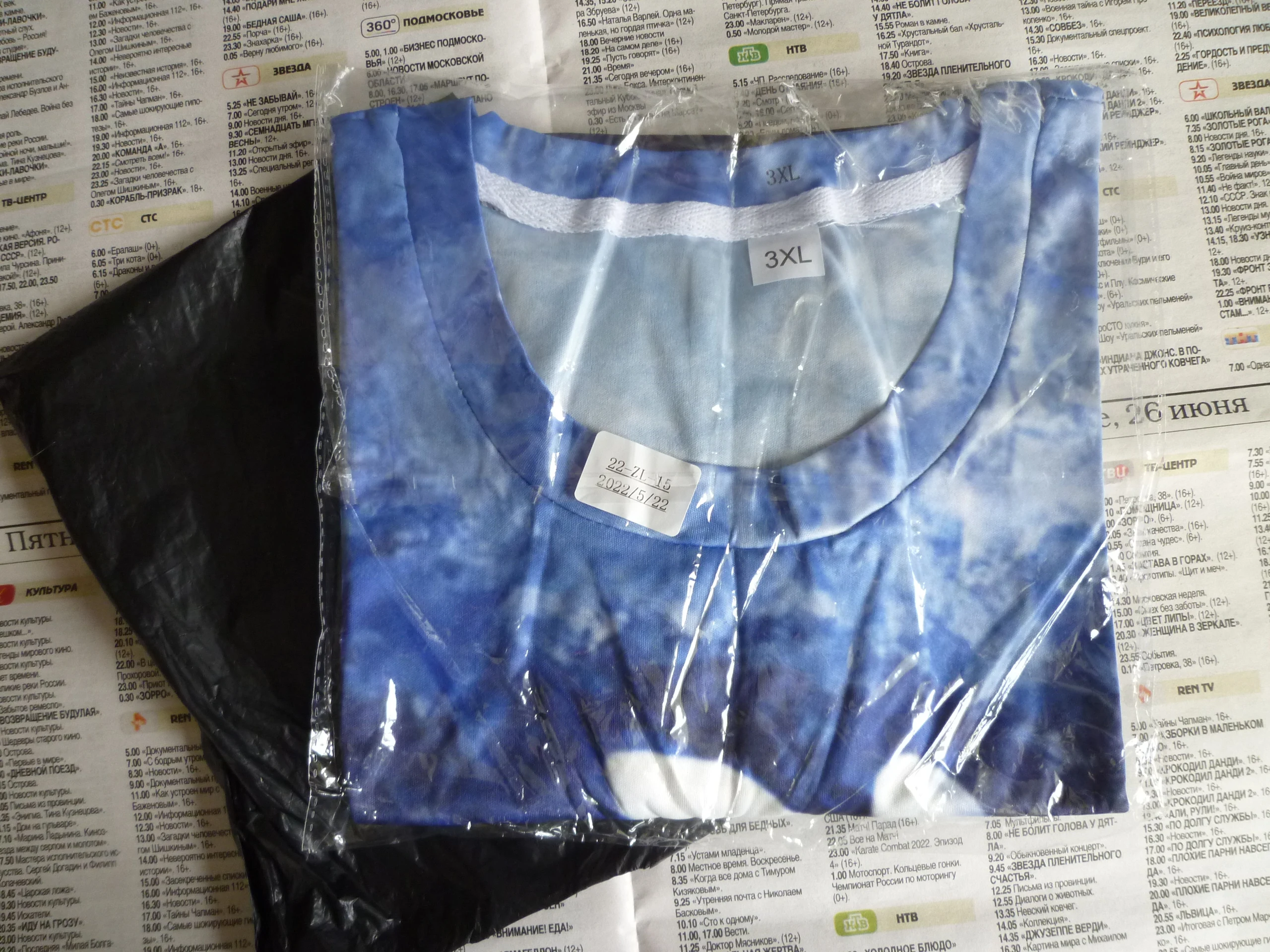 Заказала 26-05-2022, доставлена в МО 19-06-2022 эконом-доставкой. Упаковано с тонкий п\э пакет. Футболка- СИНТЕТИКА, очень тонкая, приятная на ощупь. Размер соответствует таблице, на р 58 заказала 3хл. Пошито качественно. Продавца рекомендую.