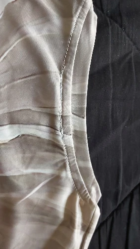 очень-очень тонкая синтетика. вроде не просвечивает (синий цвет взяла), но выглядит дёшево. и думаю, летом будет жарко в ней