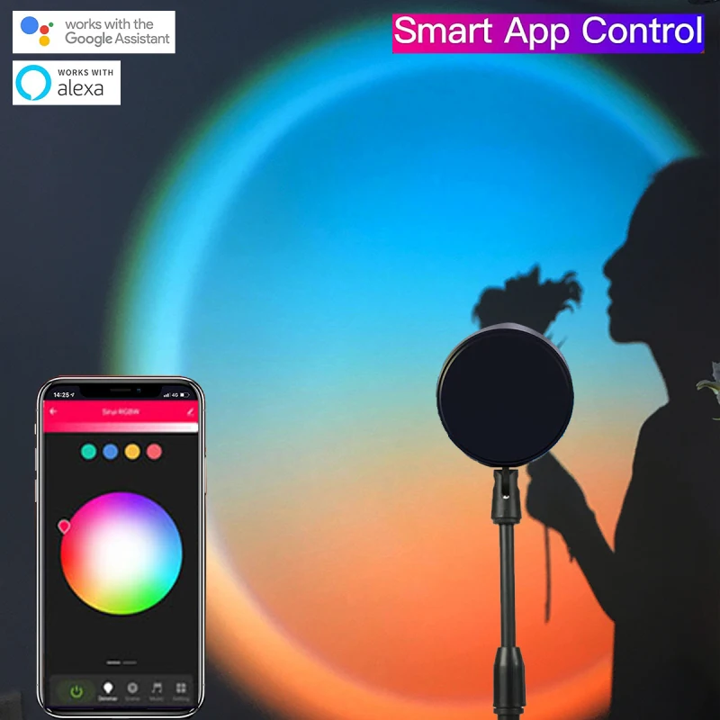 Tuya Wifi LedSunrise projection lights, эти огни проектируют удивительные круговые огни на стенах, потолке и полу. Он может управляться через приложение «Мобильный телефон», управляемое прикрепленным пультом дистанционного управления, может управляться голосом (Alexa, Google Assistant), или может быть приурочен, и может быть связан с другими устройствами для создания умных сцен.