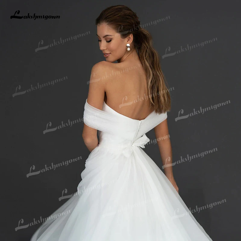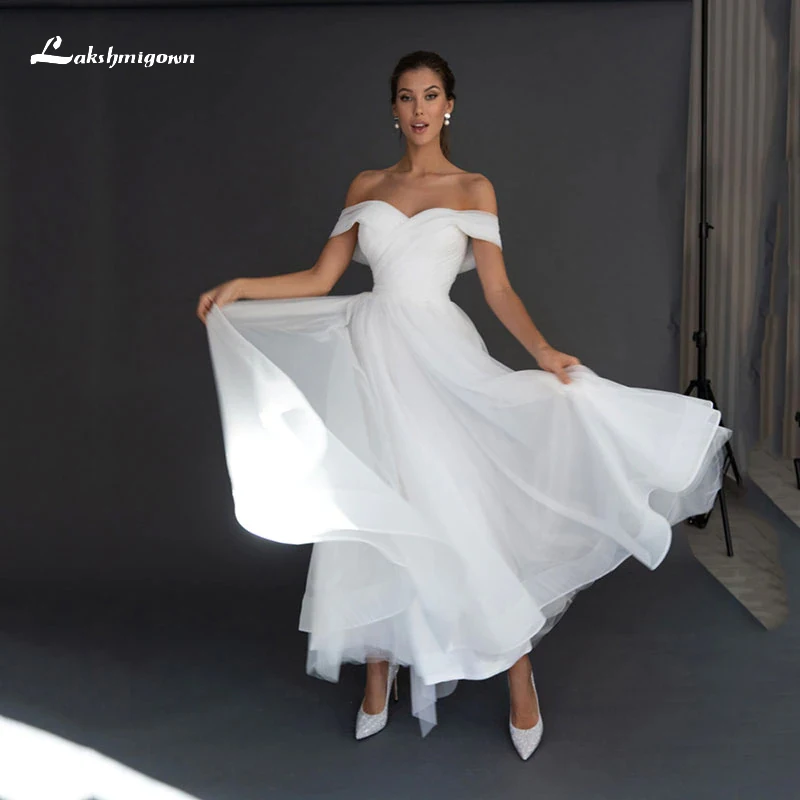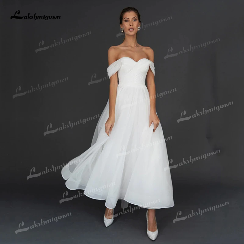 Очаровательное простое свадебное платье 2022 свадебное платье со шнуровкой сердечком с открытыми плечами рукавами на спине из органзы платья невесты длиной до щиколотки с бантом