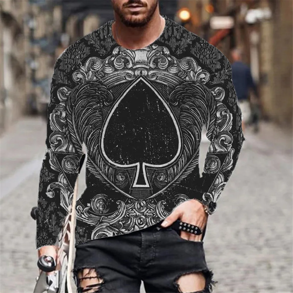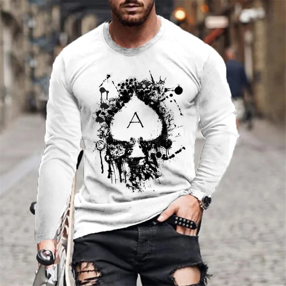 Мужская одежда на весну и осень, футболка с 3d принтом, футболка оверсайз с круглым вырезом и длинными рукавами, свитер без косточек