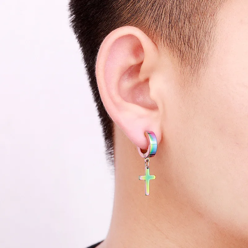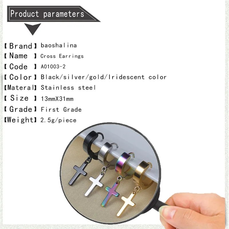 Серьги-кольца унисекс с подвеской-крестом из нержавеющей стали, длинные ювелирные украшения в стиле панк и черного геометрического дизайна, готический подарок для женщин и мужчин