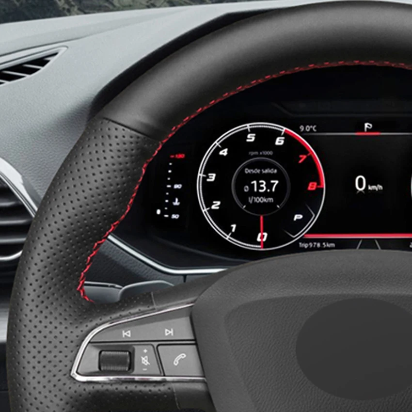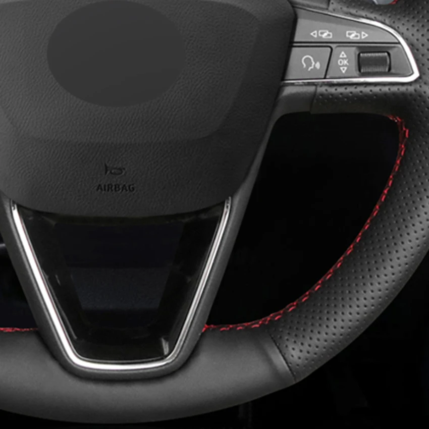 Искусственная кожа черного цвета Ручное шитье для Seat Leon 5F Mk3 2013-2019 Ibiza 6J Tarraco Arona Ateca Alhambra