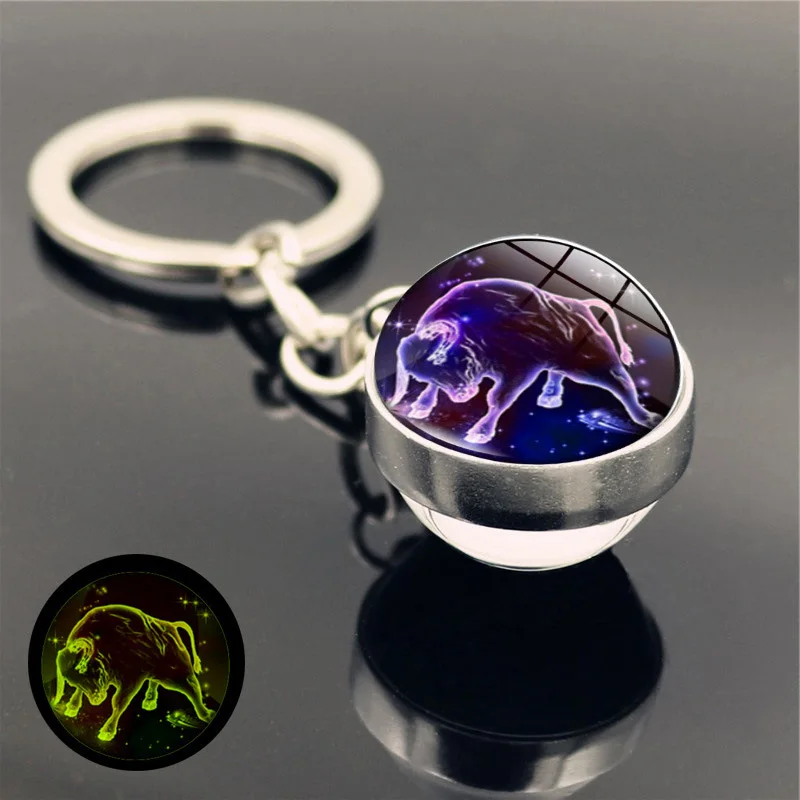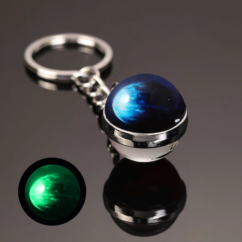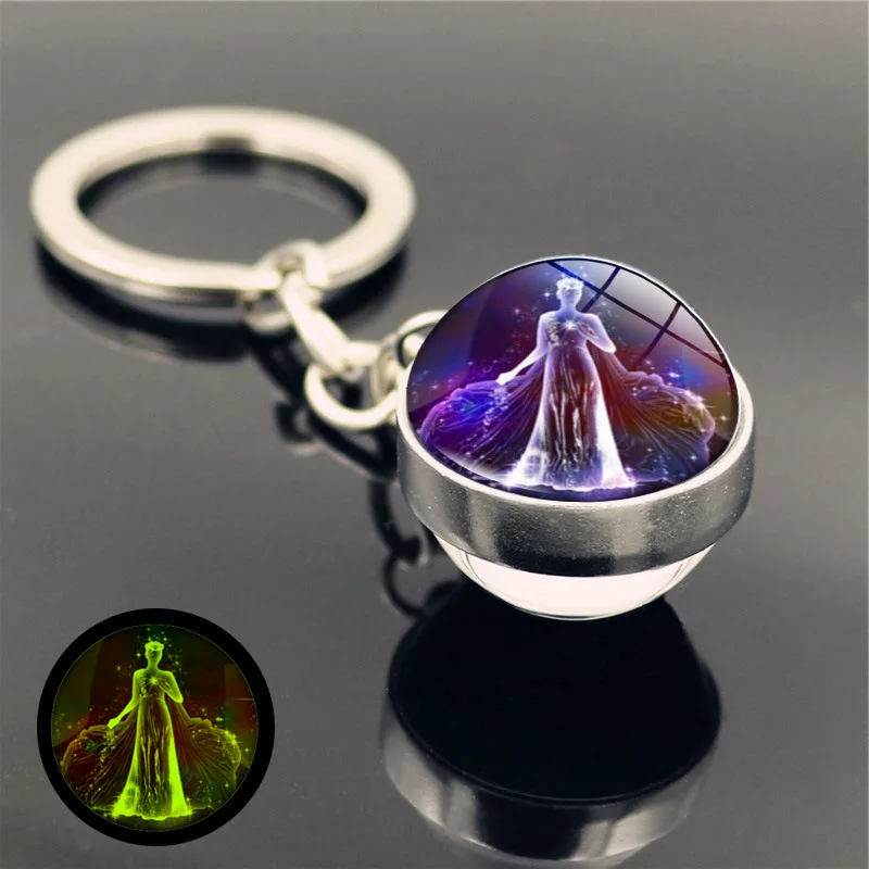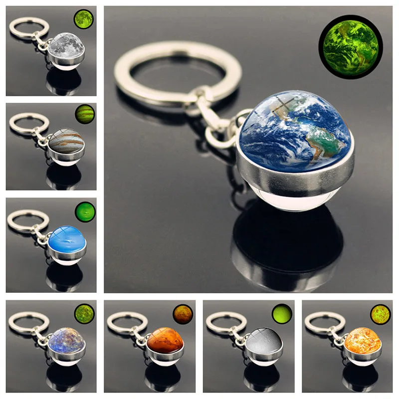 Брелок для ключей с двумя боками, стеклянный шар, ювелирное изделие, земная галактика, солнечная система, подвеска, брелок для автомобиля, подарок, 12 созвездий
