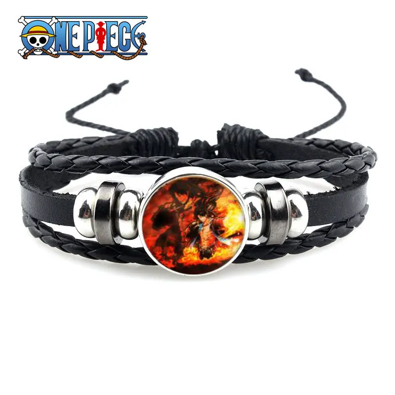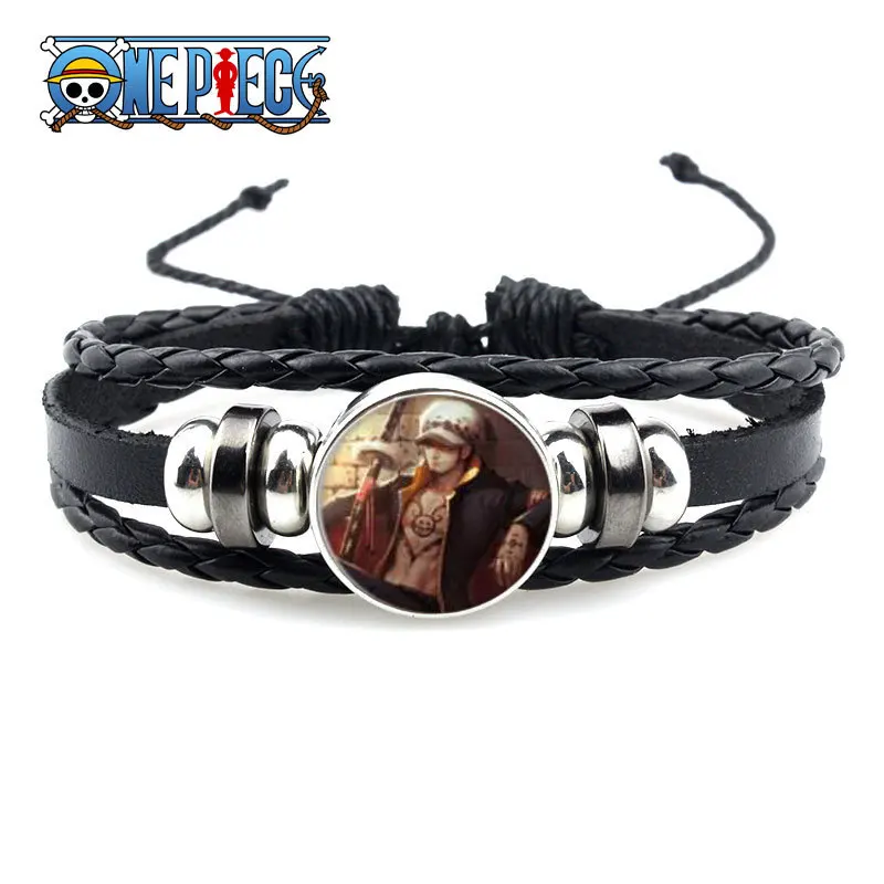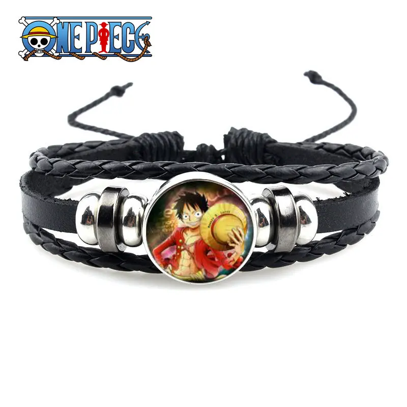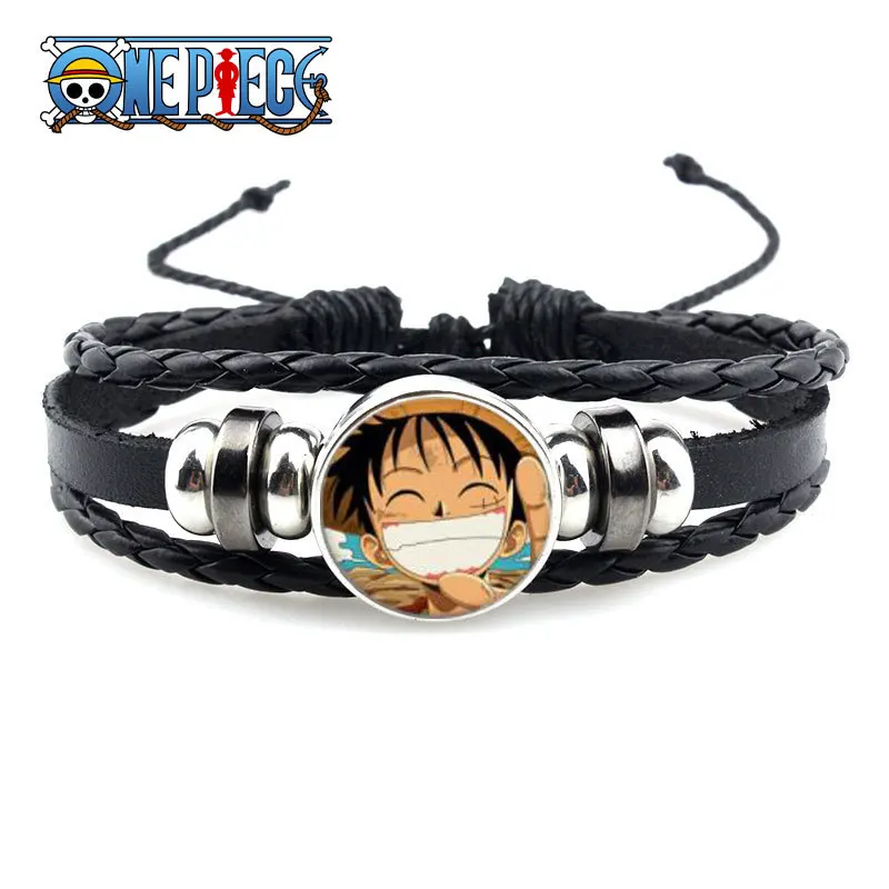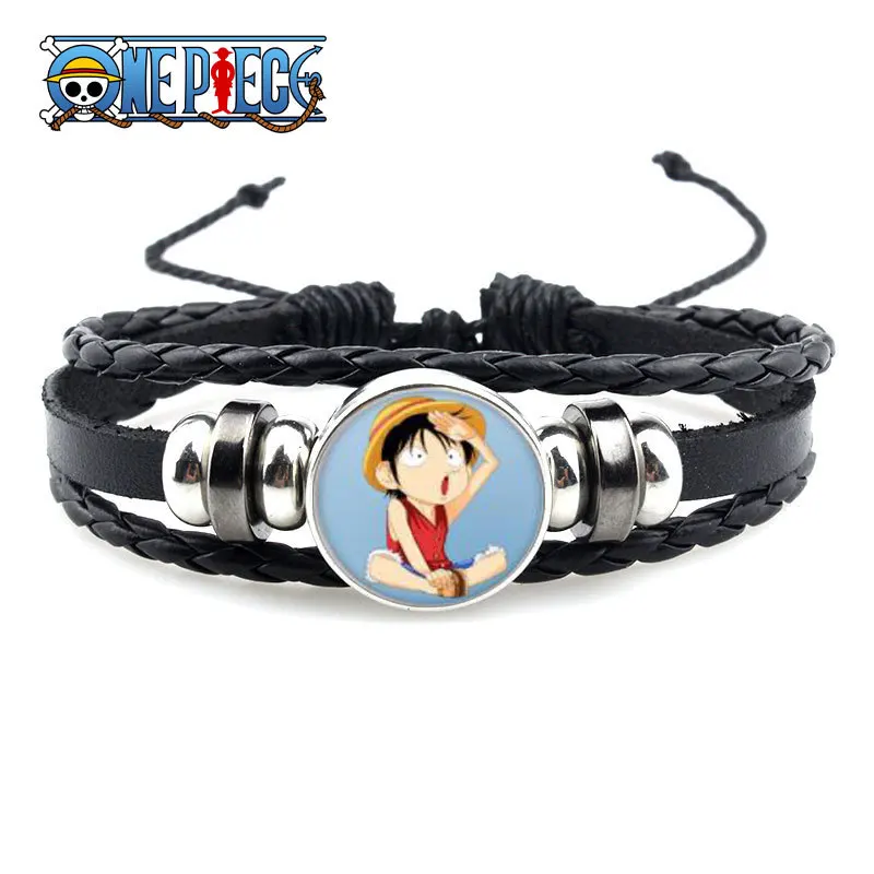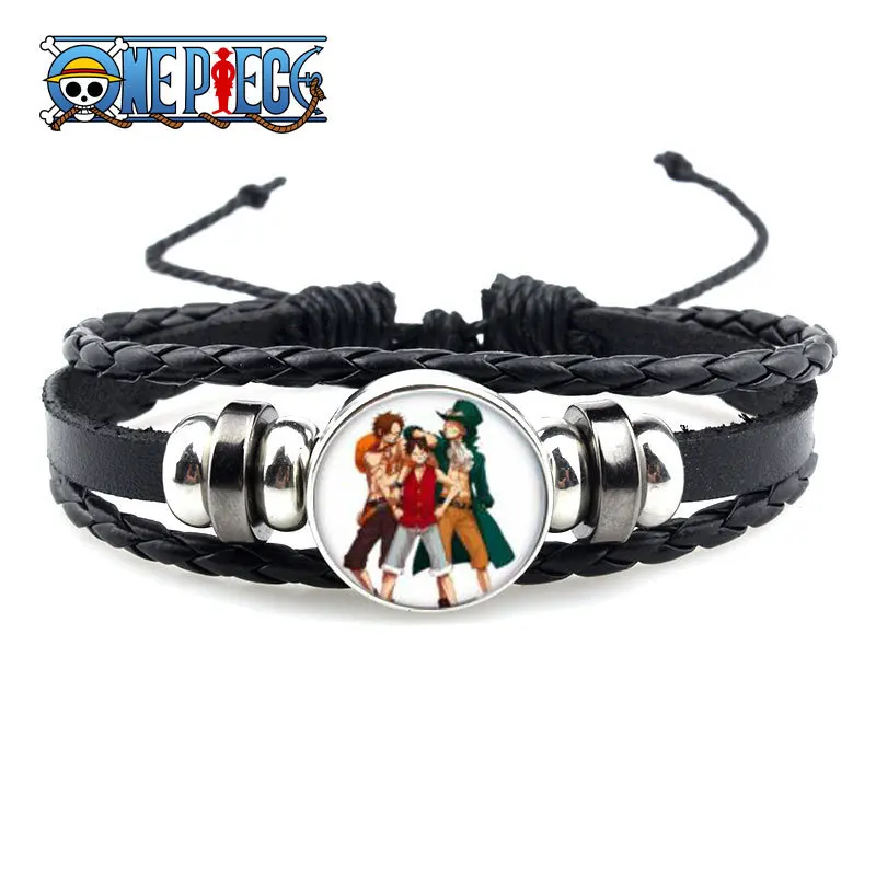 Японский кожаный браслет Luffy с пиратским логотипом аниме цельный ...