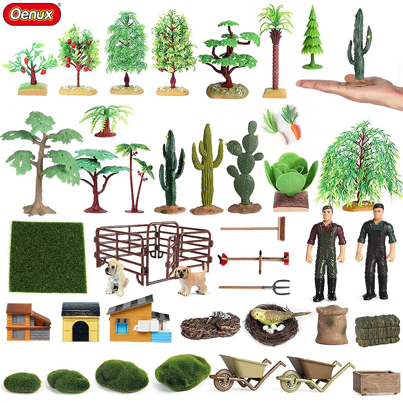 Домашнее украшение Oenux, имитация фермы, серия сцена, животные, модель, кактус, пальмы, вытащить фигурки, миниатюрные милые детские игрушки