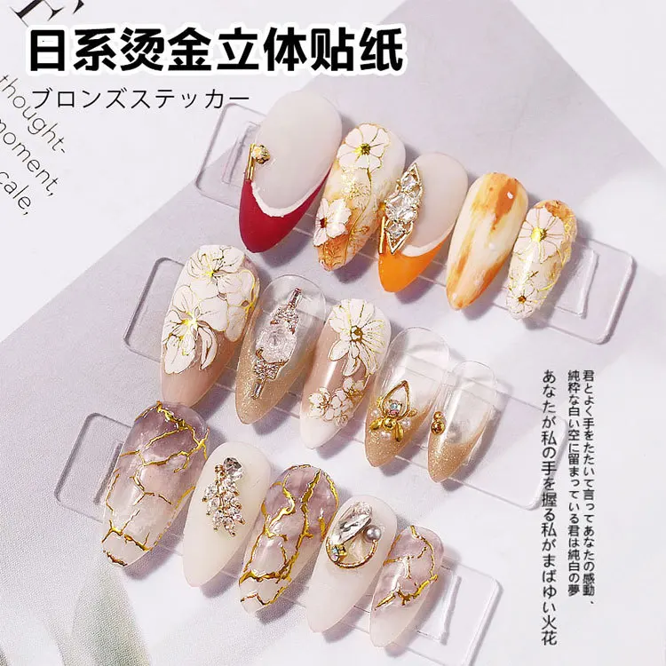 Бронзирующая 3d-наклейка для ногтей золотого и серебряного цветов, ...