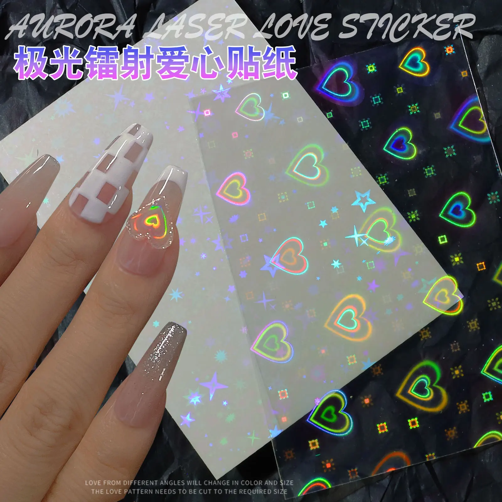 2 листа Аврора лазер сердце дизайн ногтей Наклейка 3D динамические ...