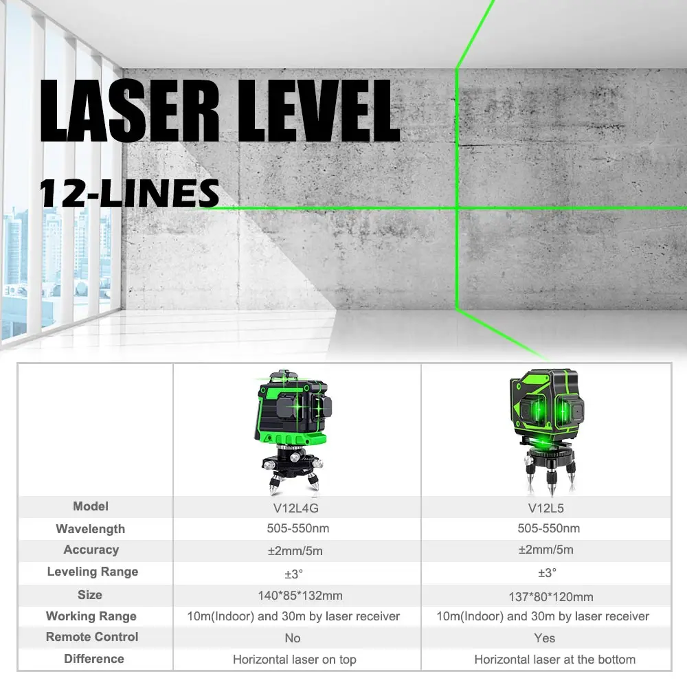 Самонивелирующийся лазерный уровень, 12 линий, 360 градусов