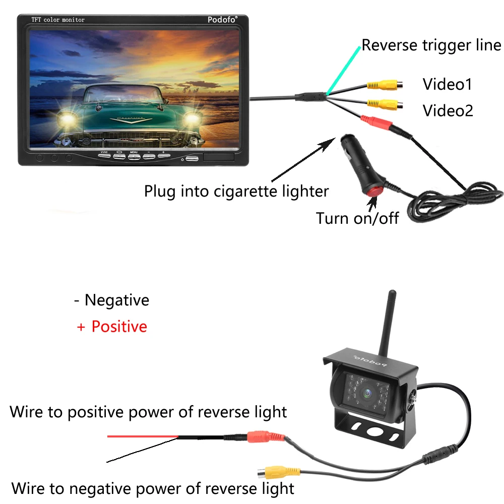 4. Простота установки-Беспроводная помощь при парковке; Монитор начнет автоматически и синхронизирует видео с камеры заднего вида, когда вы поддерживаете свой автомобиль.