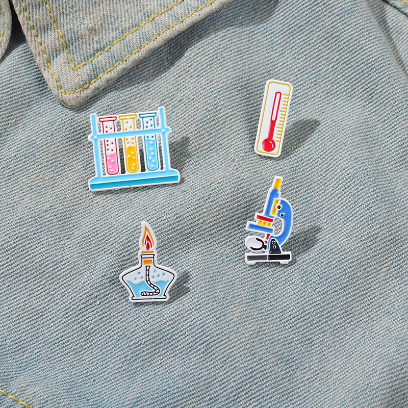 Мультяшный инструмент химической физики эмалевые булавки тестовая трубка спиртовая Лампа микроскоп термометр брошь значок лацкан Одежда ювелирные изделия