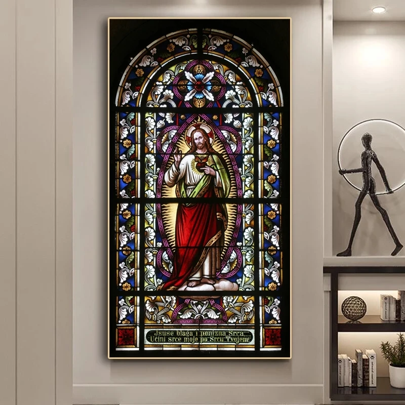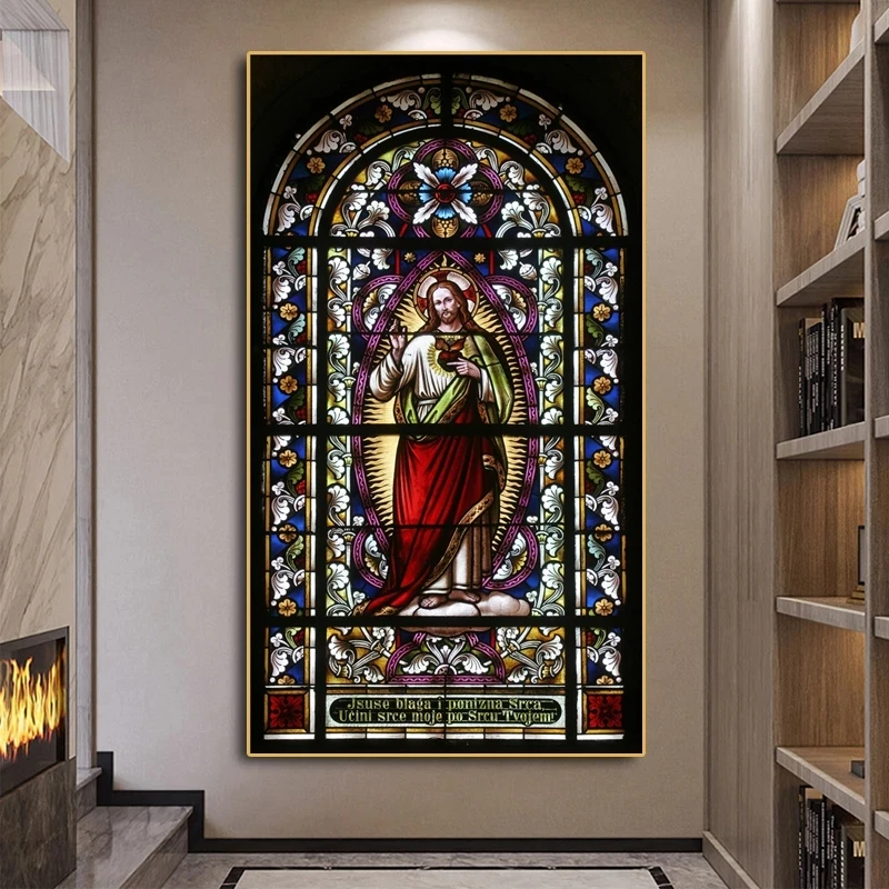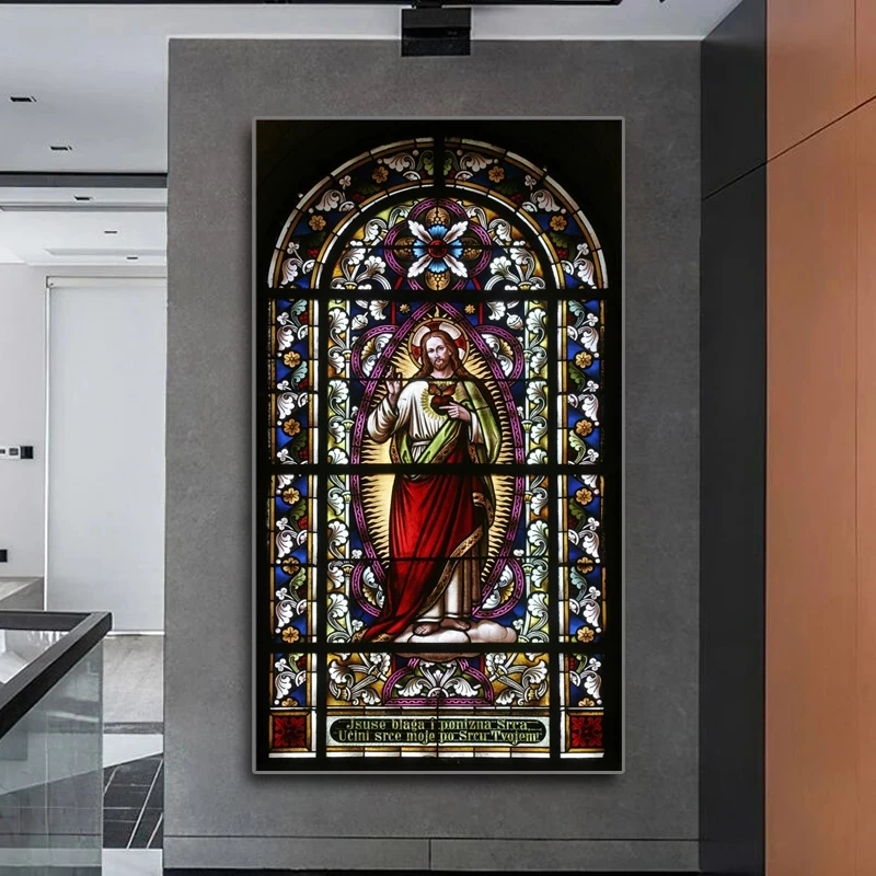 Картина на холсте с изображением церкви, цветов, окна, Иисуса Бога славы, постеры и принты большого размера, картины для украшения стен в гостиной