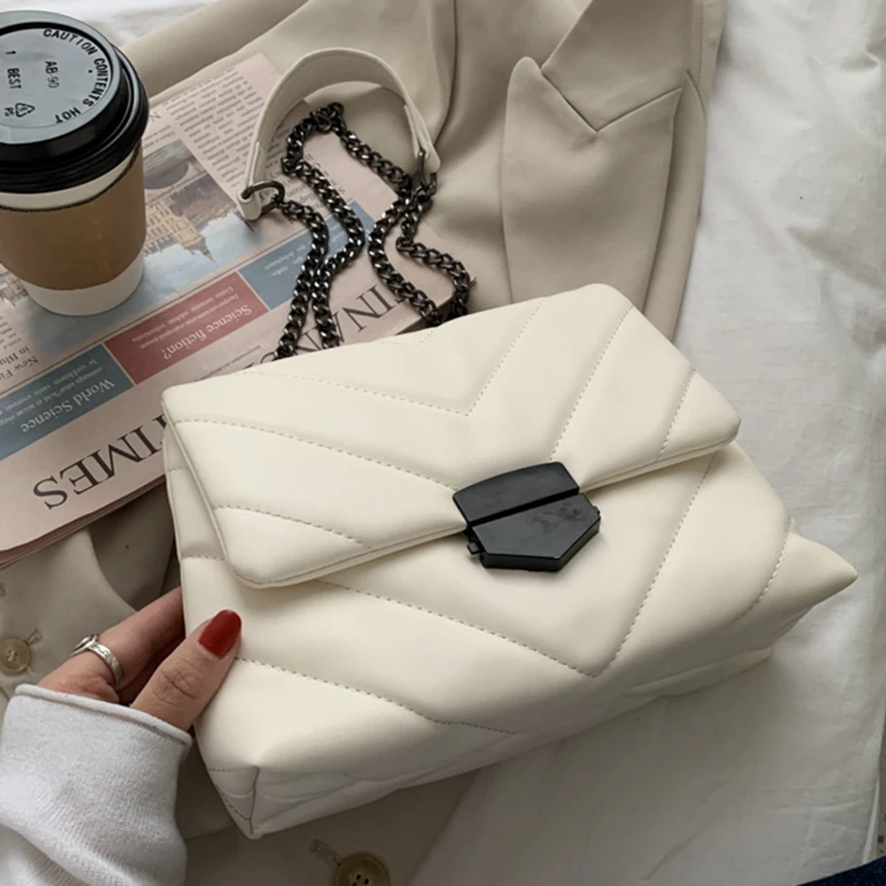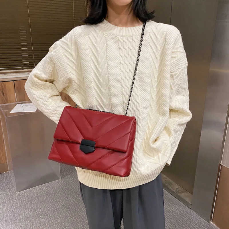 Женские сумки через плечо из искусственной кожи с вышивкой и нитью, модные сумки через плечо с цепочкой, женская брендовая сумка большой вместимости