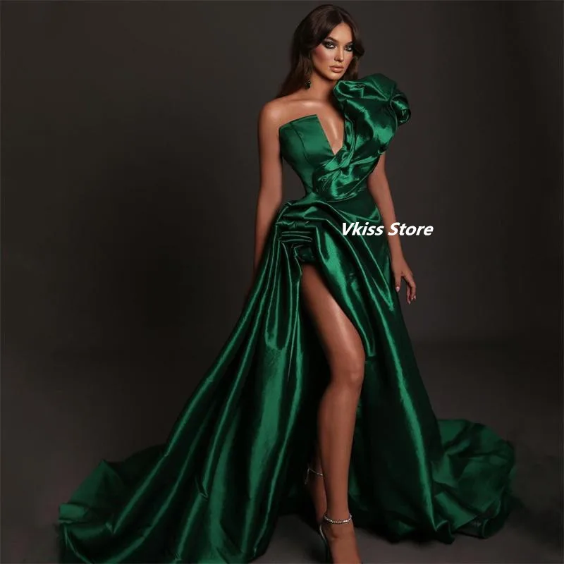 Элегантные зеленые вечерние платья на одно плечо, пышные вечерние платья без рукавов для выпускного вечера, банкетные индивидуальные платья до пола с Боковым Разрезом, новинка 2022New