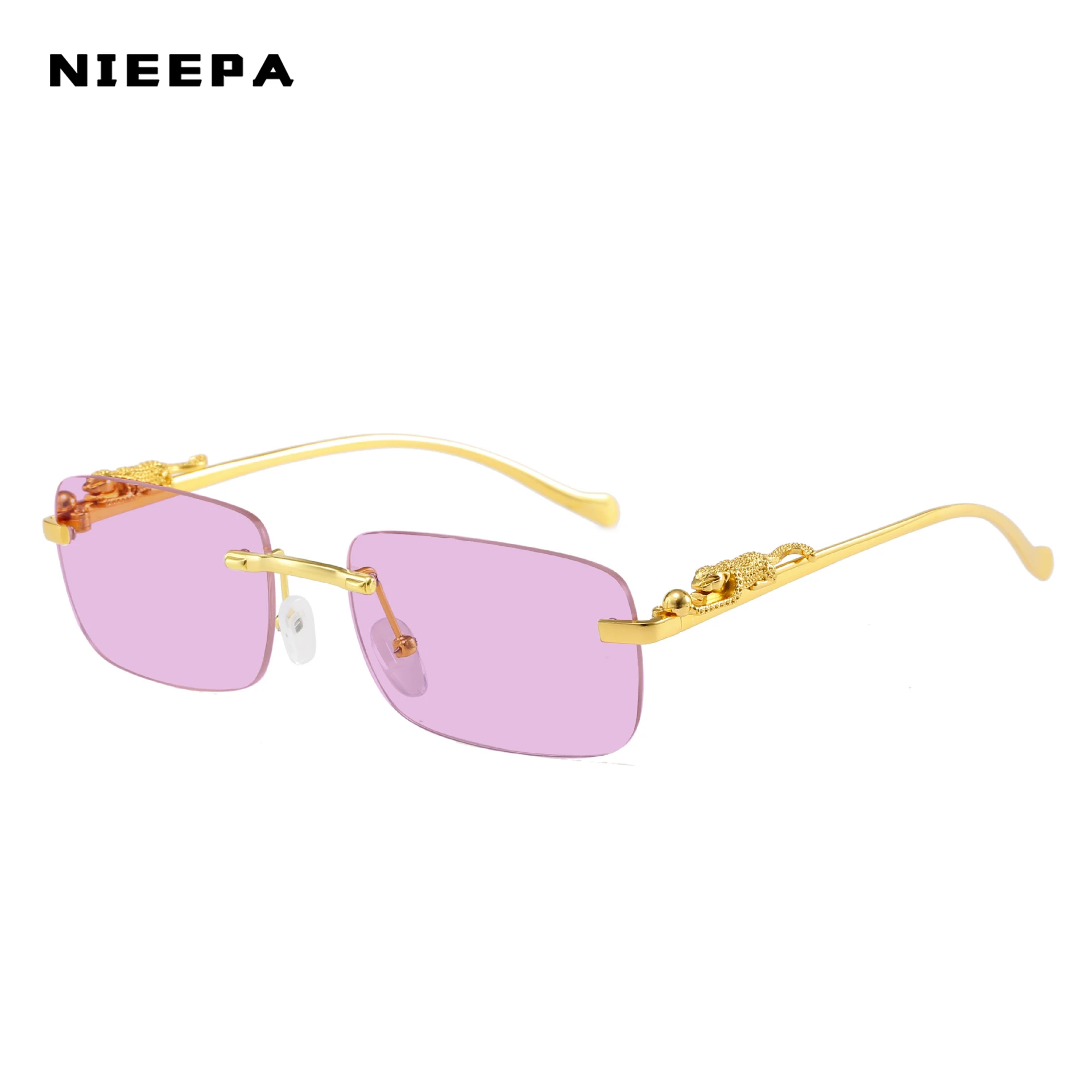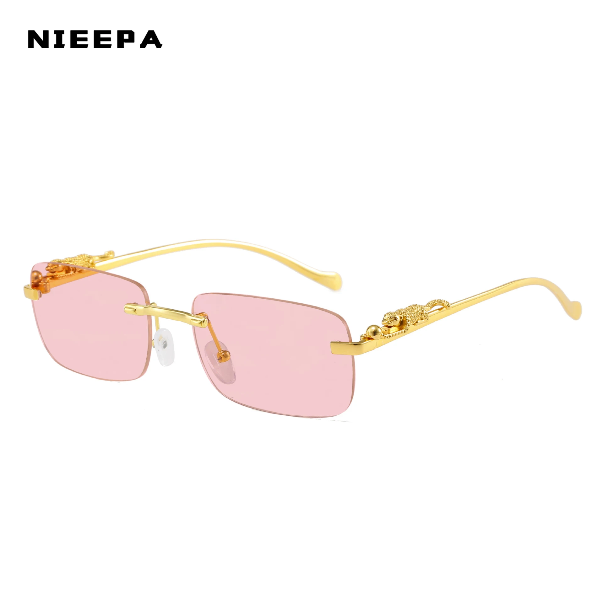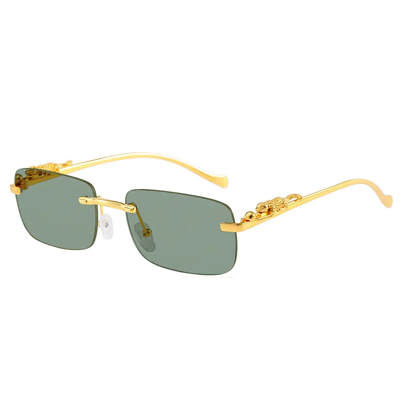 Новинка 2022, прямоугольные солнцезащитные очки без оправы, женские ретро-очки с украшением гепарда и прозрачными океанскими линзами, мужские солнцезащитные очки, Оттенки UV400