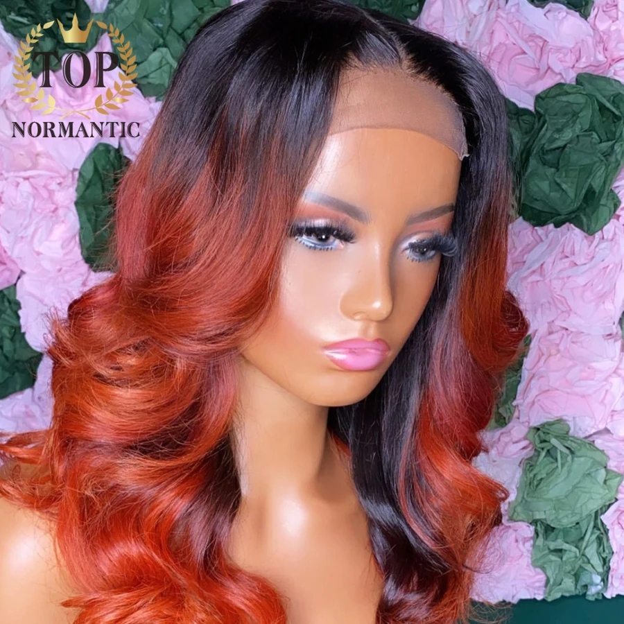Topnormantic Ombre оранжевый цвет тела волны парики Preplucked Hairline бразильский Remy человеческие волосы 13x4 кружевные передние парики для женщин