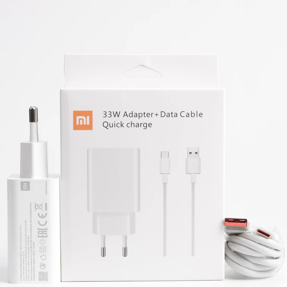 Оригинальное зарядное устройство Xiaomi 33 Вт Полный комплект с кабелем типа C для Mi 10 9 10T Lite POCO X3 NFC Redmi K40 Note 9 10 Pro