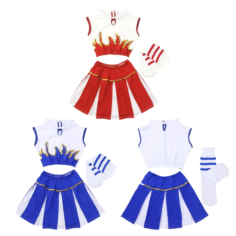 Детский костюм для девочек, костюм для чарлидинга, короткий топ без рукавов с юбкой и носки, комплект танцевальной одежды для карнавала, танцевальной соревнования