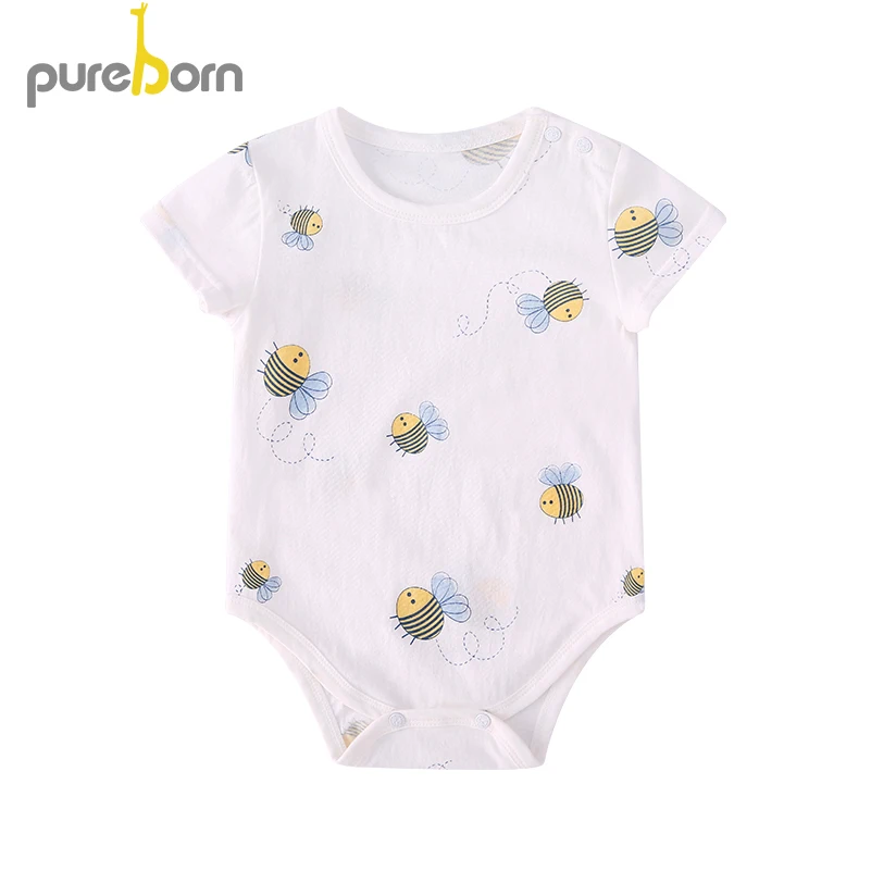 Комбинезон для новорожденных Pureborn, унисекс, Детский комбинезон с длинными короткими рукавами и воротником Питер-Пэн, хлопковый комбинезон для маленьких мальчиков и девочек