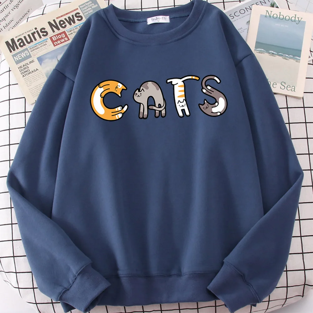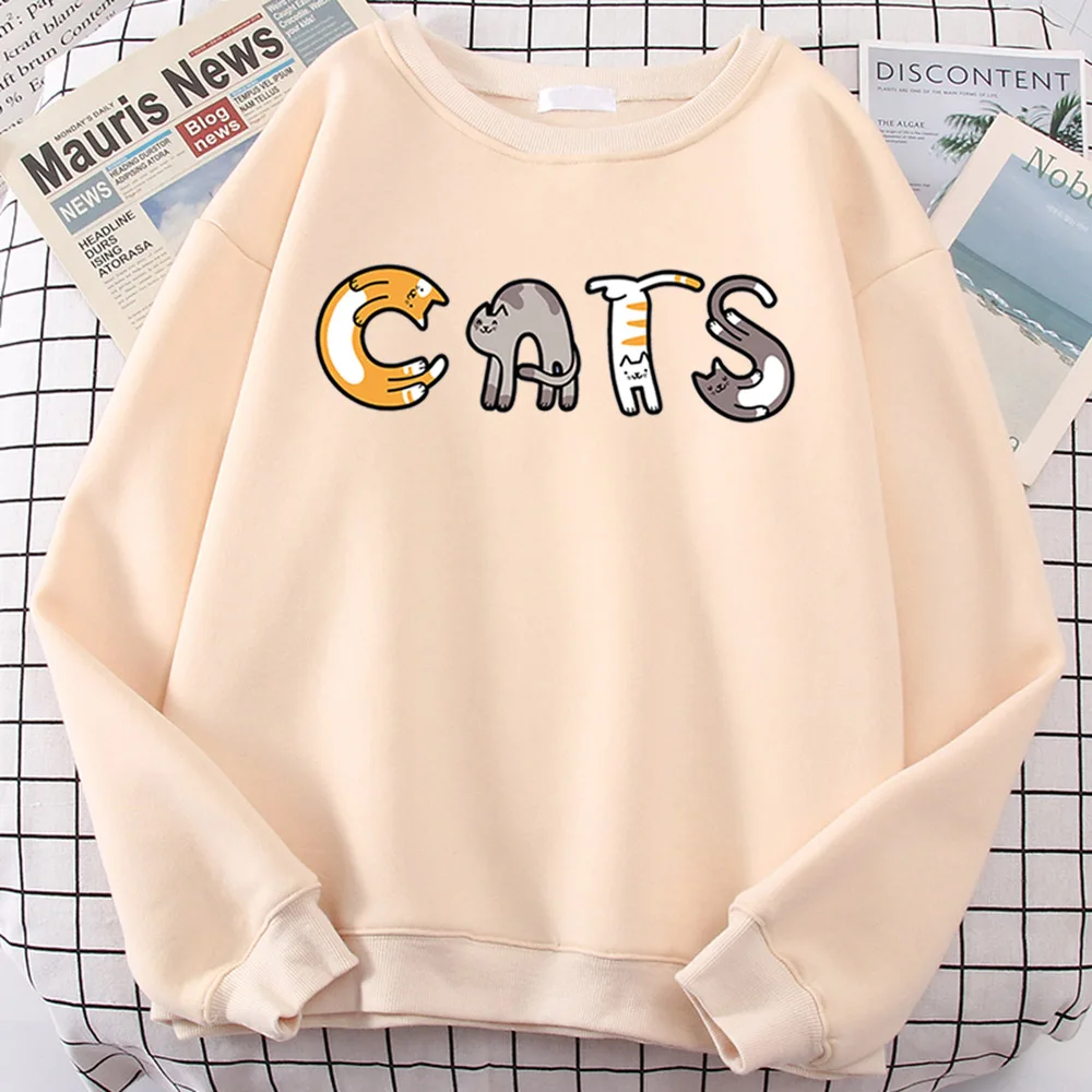 Женские толстовки с принтом кошки и букв, женские толстовки с круглым вырезом, спортивный топ большого размера в стиле Харадзюку, милые женские толстовки с длинным рукавом и животными