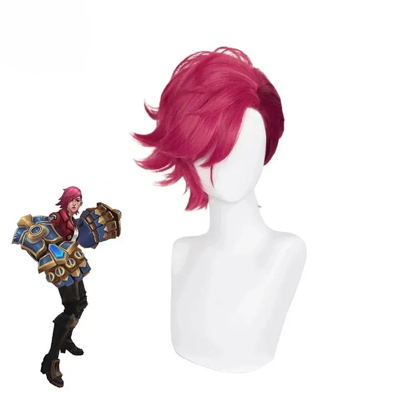 Сапоги для косплея LOL Arcane Vi, парик, Короткие парики глубокой розовой расцветки для Хэллоуина, Женский костюм для косплея Arcane Vi, женская обувь