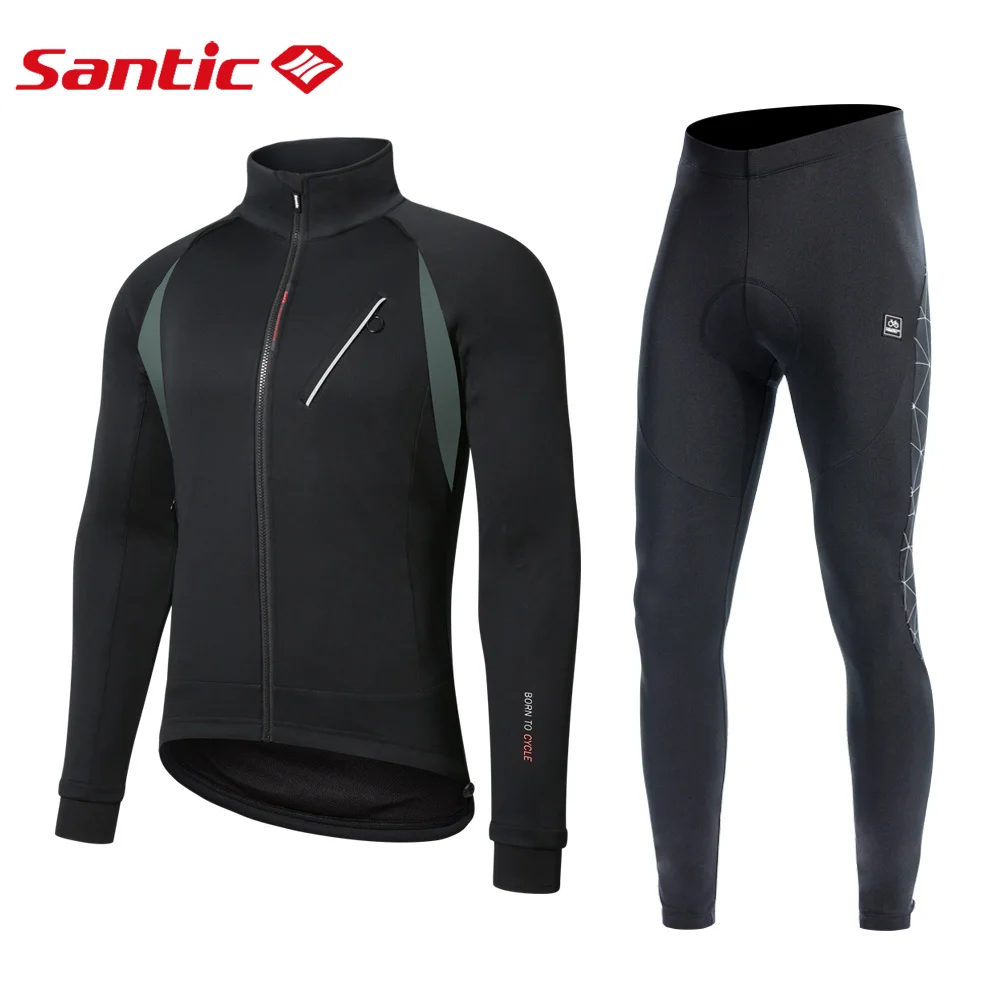 Santic мужской костюм для велоспорта, зимняя велосипедная куртка, велосипедные штаны, флисовая спортивная одежда, Теплый горный велосипед, велосипедный костюм, теплый велосипед, ветрозащитный