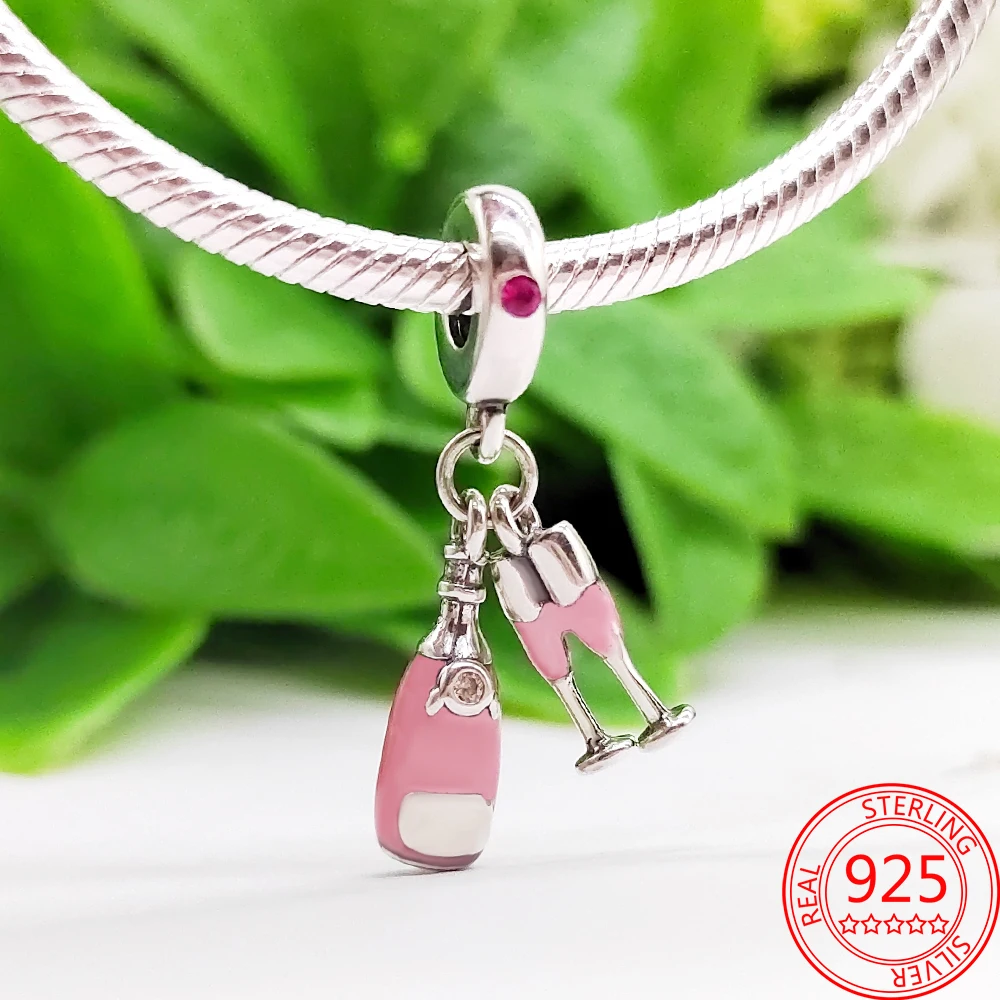 Новинка, Серебро S925 пробы, розовое вино, стеклянная лампа, соответствует стандартам Пандоры, сделай сам, подарок для девушек, ювелирные изделия