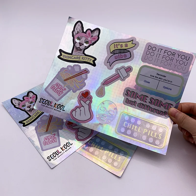 На заказ лист наклеек матовый яркий прозрачный винил ПВХ Die Kiss Cut Печать Водонепроницаемый Kawaii милый эстетический для дневника голографический