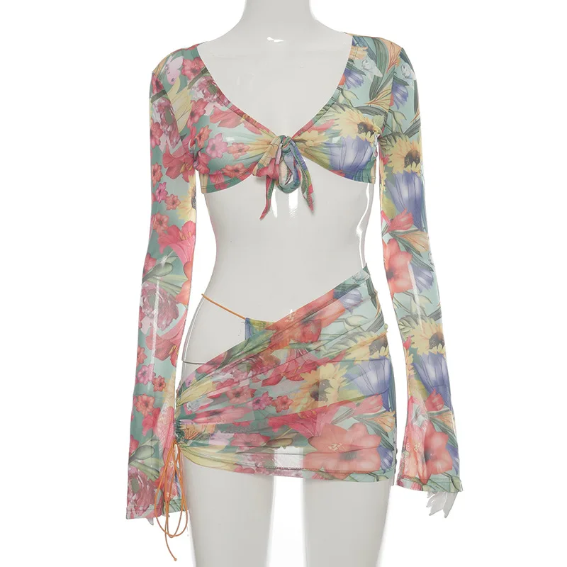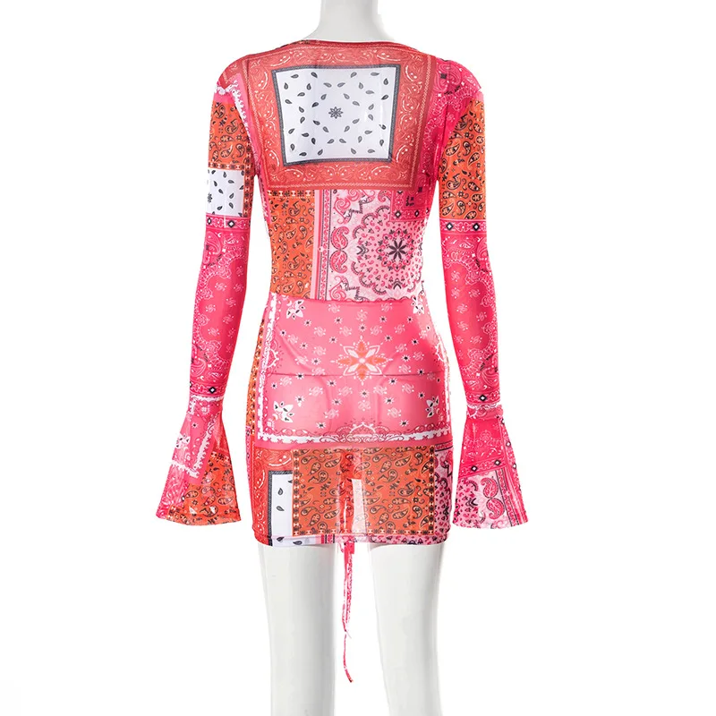 Богемное платье Tie Dye, женское пикантное летнее уличное платье, облегающее Сетчатое платье с длинным рукавом и глубоким декольте, для клуба, вечеринки, 2022