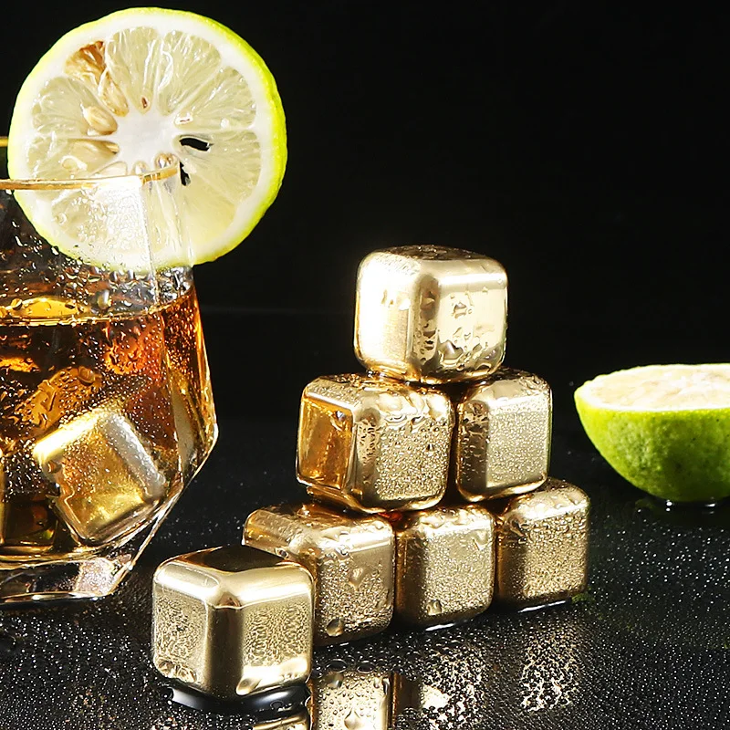 Многоразовые золотые кубики льда камни из нержавеющей стали охлаждающие камни охладители для виски вино держать ваш напиток холодным дольше Бар инструменты 7D