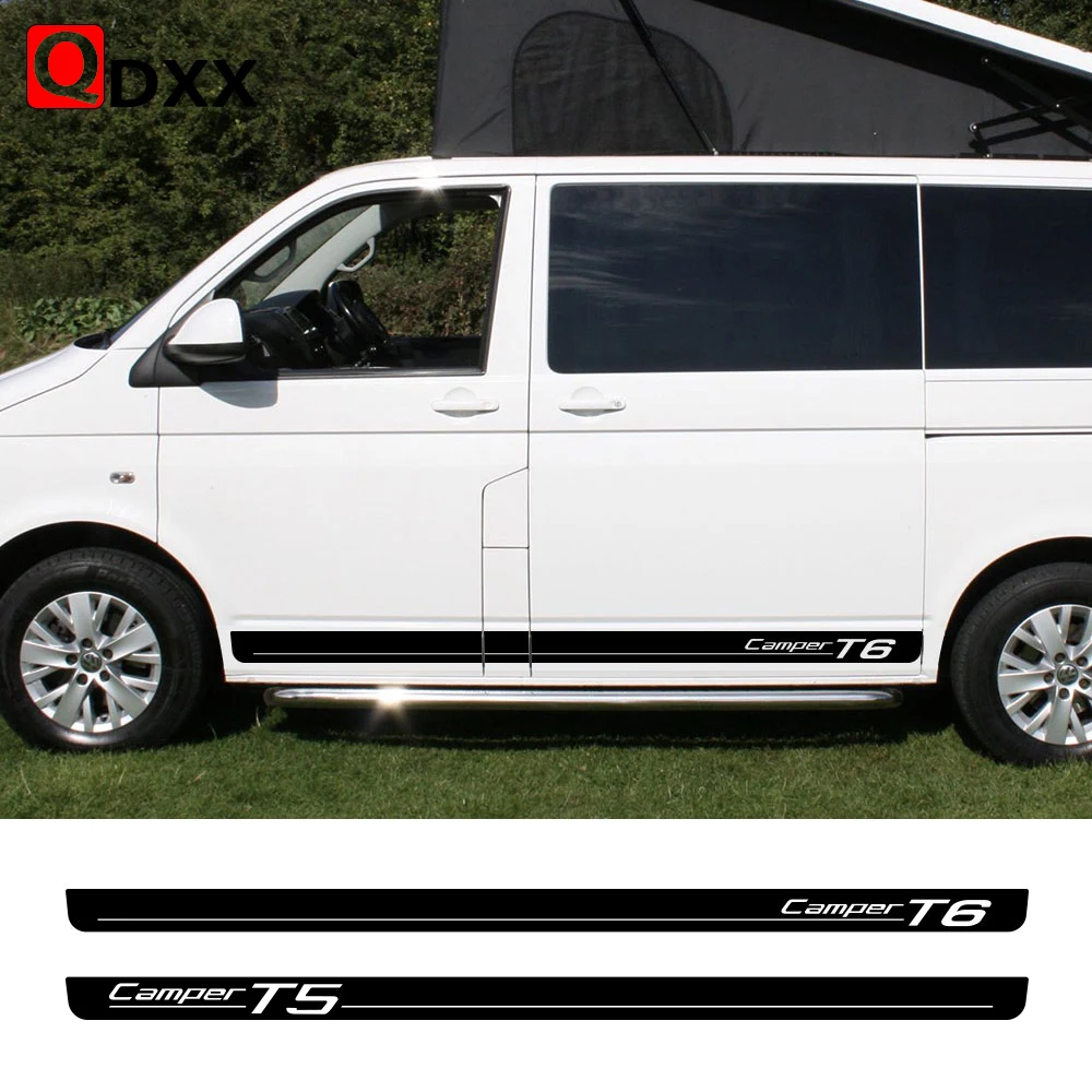 2 шт. наклейки на боковую юбку автомобиля в полоску графические виниловые наклейки для Volkswagen VW Transporter Camper T5 T6