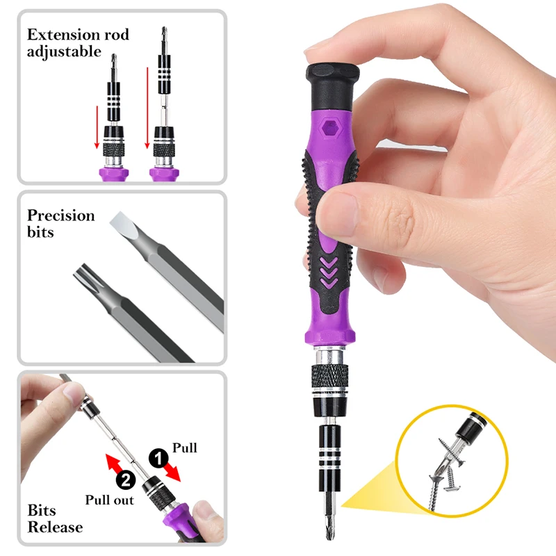 Описание:Набор отверток, инструмент для ремонта ноутбука, точный ручной набор инструментов, профессиональные аппаратные инструменты, необходимые инструменты для ремонта мобильный телефон. Хорошая производительность, стабильное качество и практичность.Он может использоваться в различных практичных ситуациях, для ремонта ноутбуков, мобильных устройств и других точных предметов, таких как наручные часы и очки, портативный и простой в переноске.