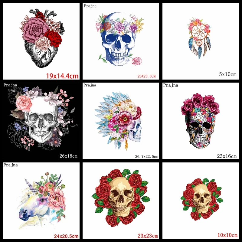 Термоклейкие нашивки с изображением розового черепа, термотрансферные нашивки для одежды в стиле панк, сердца, цветка, нашивки для футболок, Аппликации для одежды
