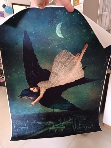 Металлическая фигурка, статуя, перья, искусство, холст, настенные п...
