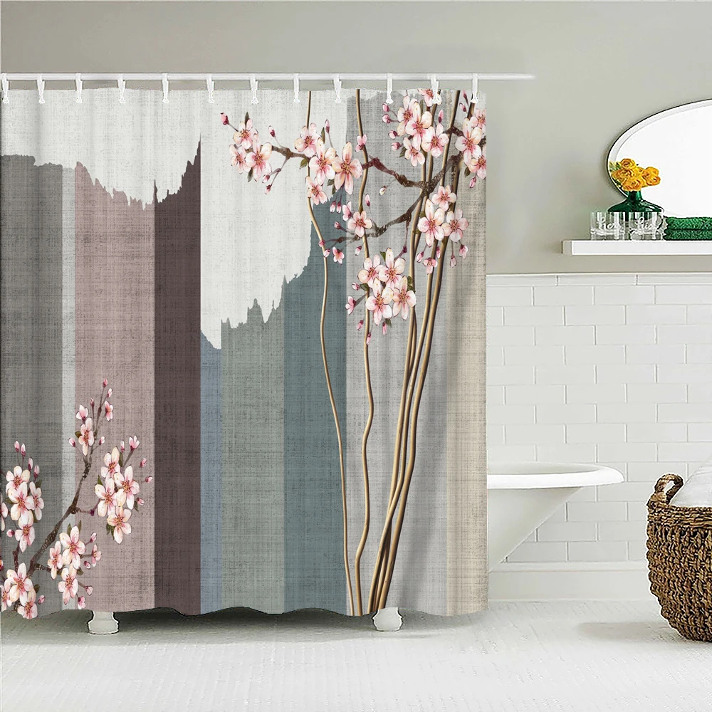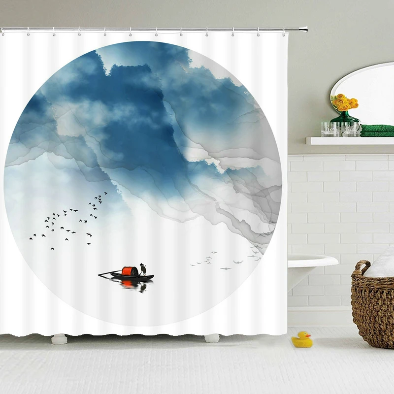 Китайская занавеска для душа с цветами и птицами и чернилами, украшение для ванной комнаты, занавеска для ванной комнаты, крючок для отправки
