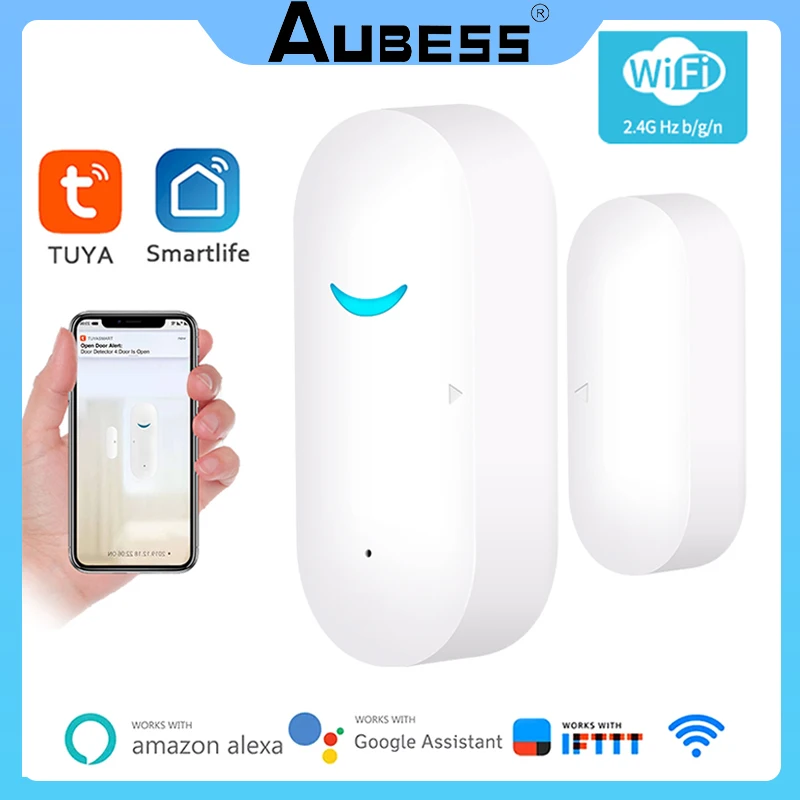 Умные детекторы открытойзакрытой двери AUBESS Tuya, домашняя сигнализация с Wi-Fi, совместима с приложением Alexa Google Home Tuya