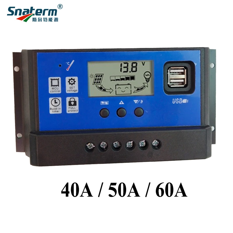 12 В 24 в авто 10A 20A 30A 40A 50A 60A ШИМ Контроллер заряда солнечной батареи Солнечное зарядное устройство солнечные регуляторы PV с ЖК-дисплеем и 5 в USB