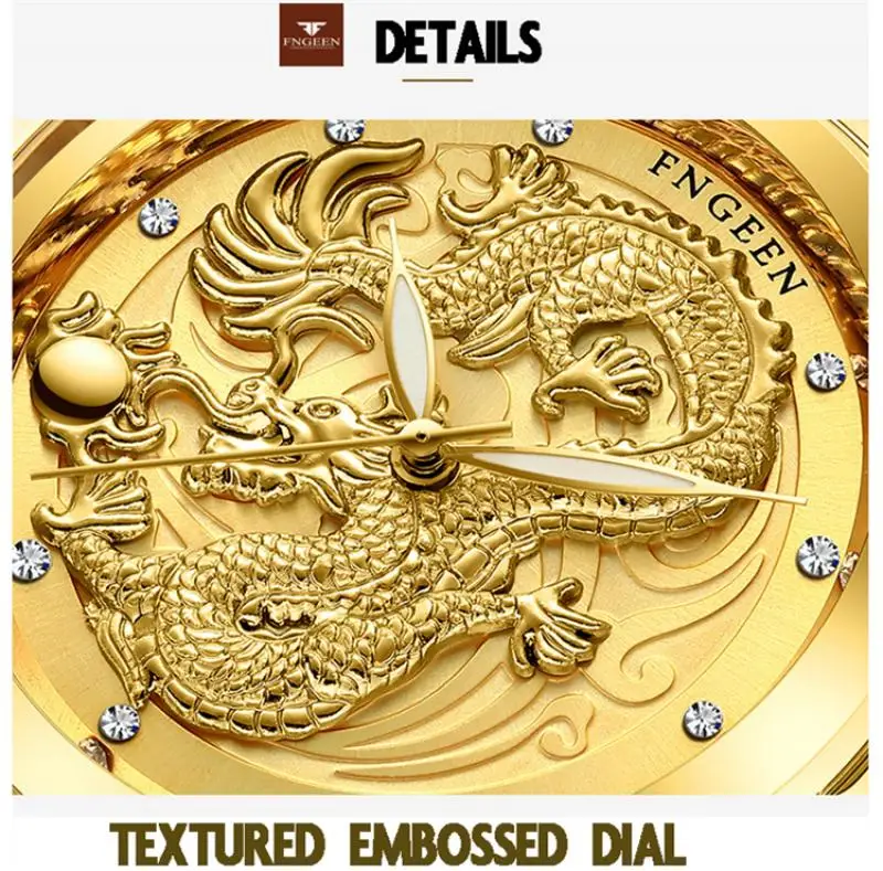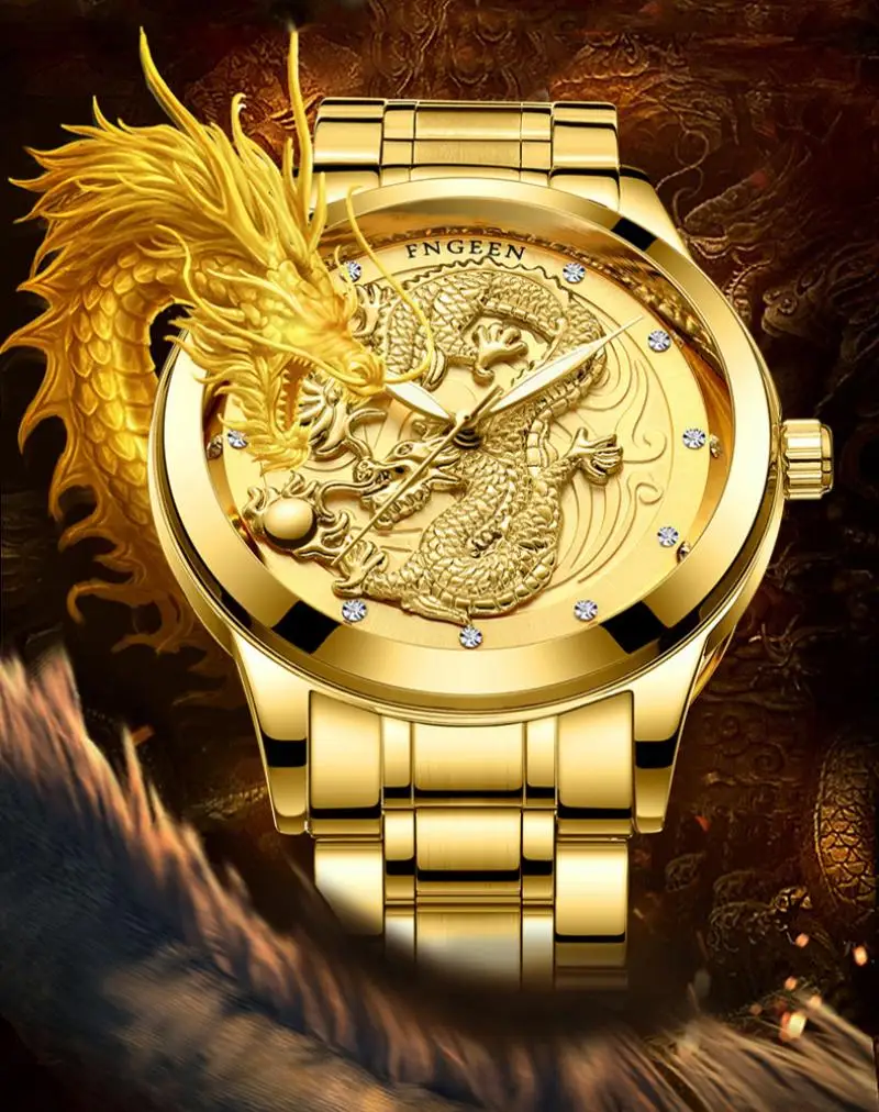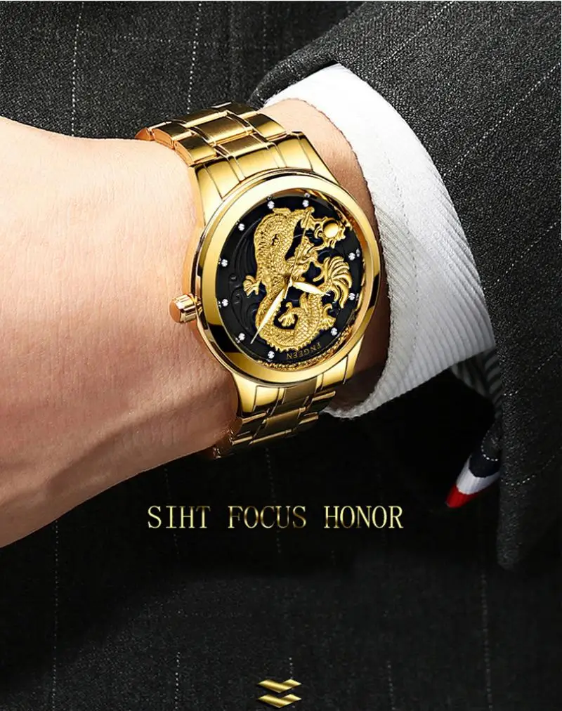 Часы Fegeen Мужские кварцевые с Фениксом, водонепроницаемые ультратонкие Стальные наручные, золотистого цвета, с браслетом из стали