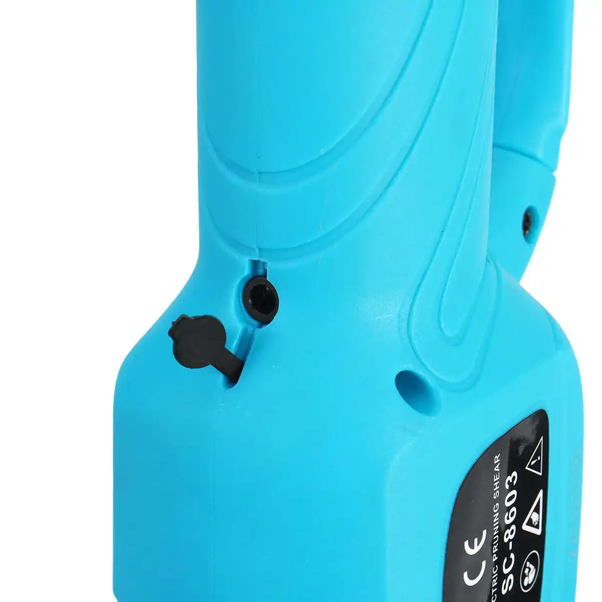 Спецификация:Наименование: электрические секаторыЦвет: синийВилка: вилка стандарта ЕС/СШАНапряжение: 100-240 ВМощность аккумулятора: 16,8 в 2000 мАчМощность: 1.5AМатериал: ПВХ, металлРазмер: 29x12 см (11,4x4,7 ")Диаметр резки: 25-32 ммВремя зарядки: 2 ~ 2,5 часаВремя работы: 4 ~ 6 часовРабочая температура: -10 ℃ ~ 60 ℃
