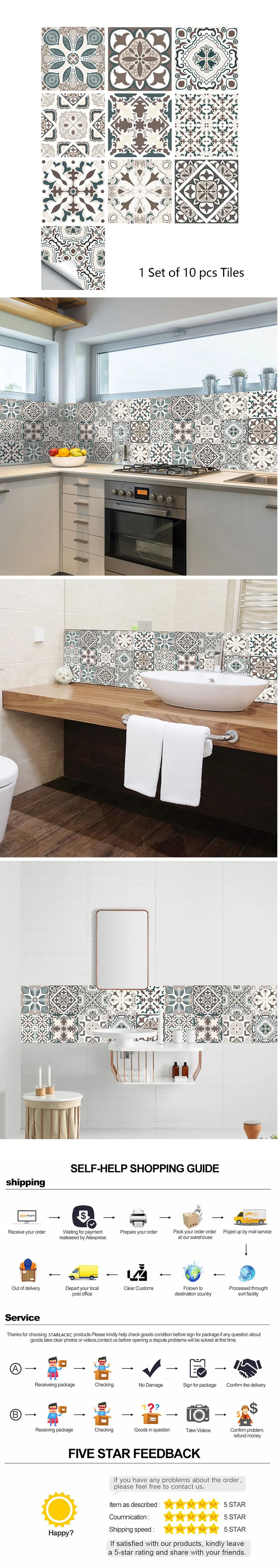 10 шт Ретро шаблон стикер для настенной плитки 20x20 см самоклеющиеся Кухня Ванная Комната Водонепроницаемые обои украшение дома Наклейка для пола DIY