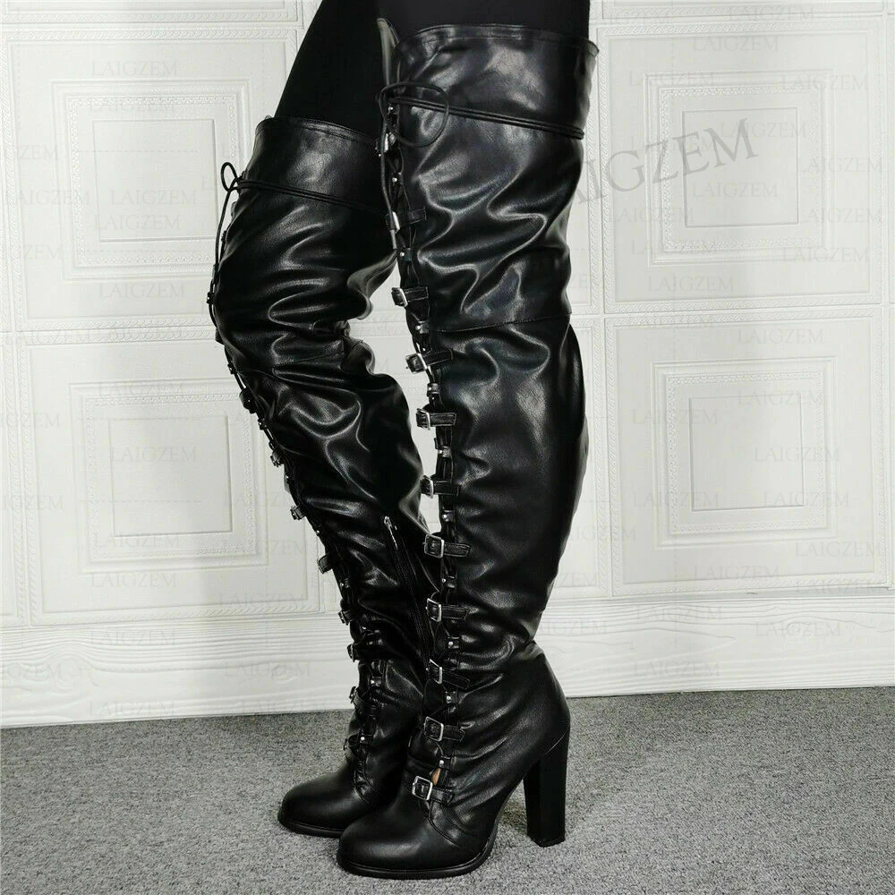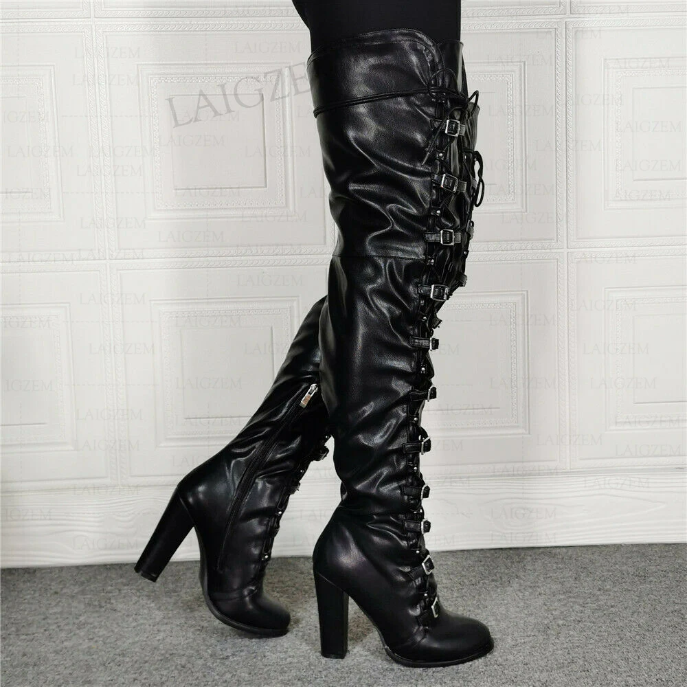 BERZIMER Женские Сапоги выше колена на молнии со шнуровкой на платф...