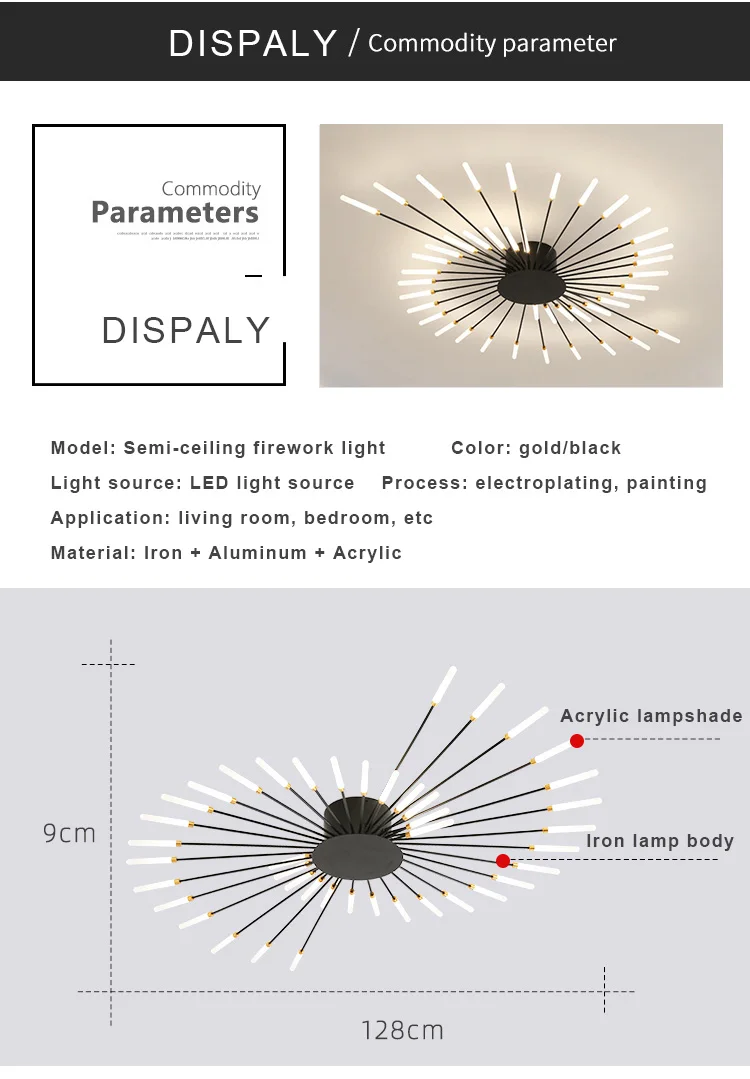 Современная светодиодсветодиодный Потолочная люстра в виде фейерверка, комнатное освещение для гостиной, спальни, столовый светильник